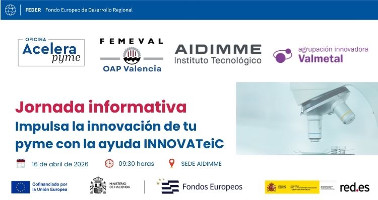 Durante esta sesión conocerás en detalle esta línea de ayudas, orientada a apoyar proyectos de I+D+i y transformación tecnológica en pymes industriales. Además, se abordará el papel clave de AIDIMME como instituto tecnológico de referencia, que acompaña a las empresas en el desarrollo de proyectos innovadores, desde la definición de la idea hasta su ejecución, validación y transferencia al mercado.