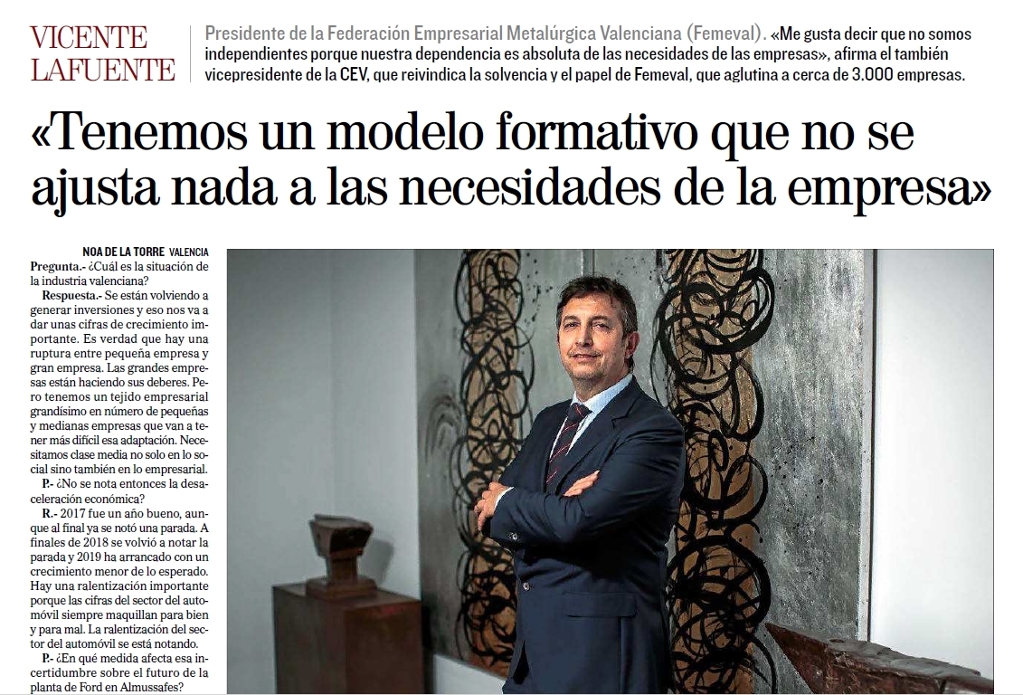 Entrevista presidente de FEMEVAL en El Mundo (26/5/2019)